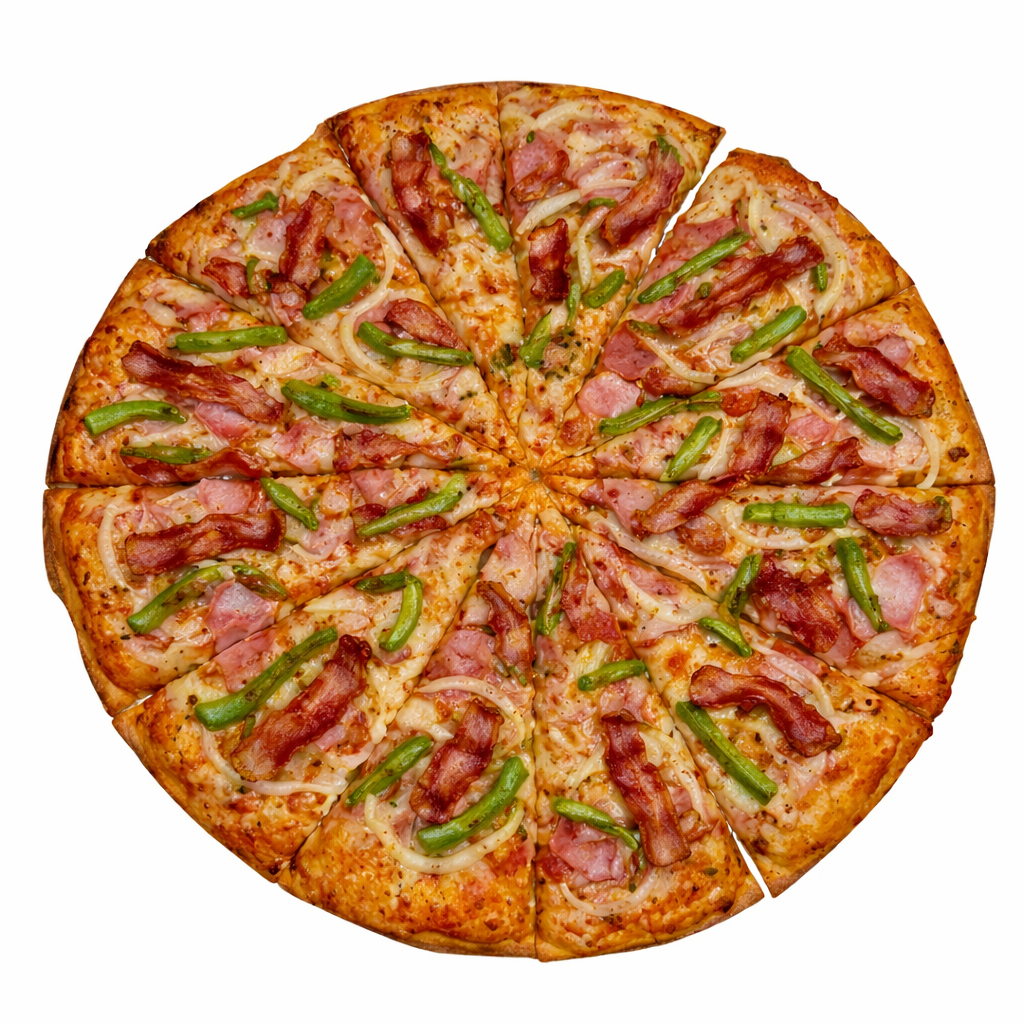 (Jamón, Tocineta, Cebolla y Pimentón + Borde de Queso)